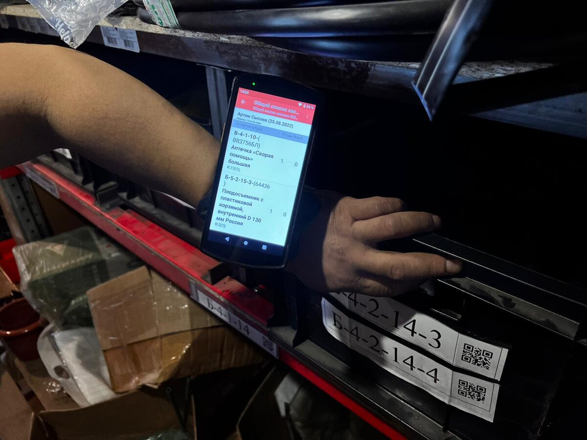 Сборщики используют наручные терминалы сборы данных. Они «подсказывают», на какой полке лежат заказанные товары. Если один и тот же товар встречается в нескольких заказах, то терминал сразу выдаст количество необходимых позиций для них. Сотруднику не придётся несколько раз ходить за одним и тем же товаром. Затем это количество будет распределено между заказами.