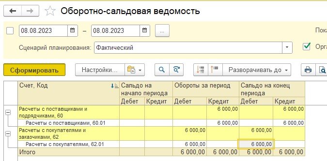 • В отчете ОСВ, балансе и в анализе бизнесе мы уже видим, что в будущем должны эти 6000 поставщику, а в отчете Расчеты с поставщиком этих данных не видим.