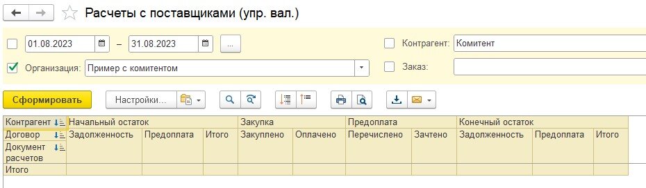 Причем в отчете «Расчеты с поставщиками» кредиторскую задолженность перед поставщиком не видим, поскольку на момент оформления продажи конечному система «не знает», чей конкретно товар продали и на каких условиях.
