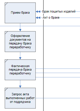 На предприятии производственный процесс, состоящий из трех переделов, один из переделов выполняется сторонним переработчиком. Также есть сложный процесс учета брака продукции.