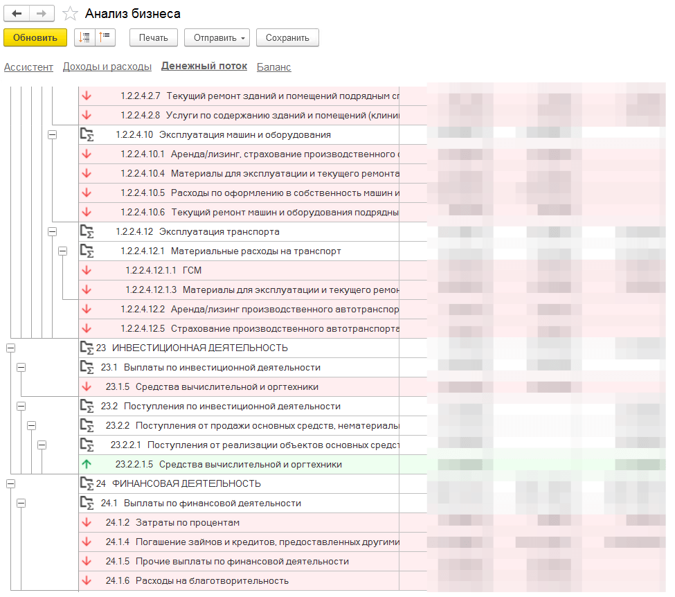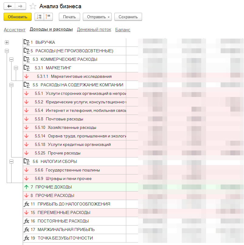 Для нас значимым результатом стали оперативные и достоверные, т. е. проверяемые до каждой цифры, отчеты по движению денежных средств, доходам и расходам. Уже после первого месяца ввода программы с помощью инструмента «Анализ бизнеса» мы в режиме онлайн видим движение денежных средств по потокам, статья, проектам и подразделениям. В отчете «Доходы и расходы» видим выручку, прямые и косвенные расходы, валовую и чистую прибыль.